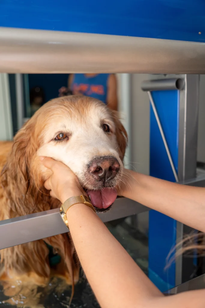 Com alguns probleminhas no quadril, ele começou o tratamento preventivo com hidroterapia e acupuntura, focando no fortalecimento muscular e cardíaco. 💧🐾